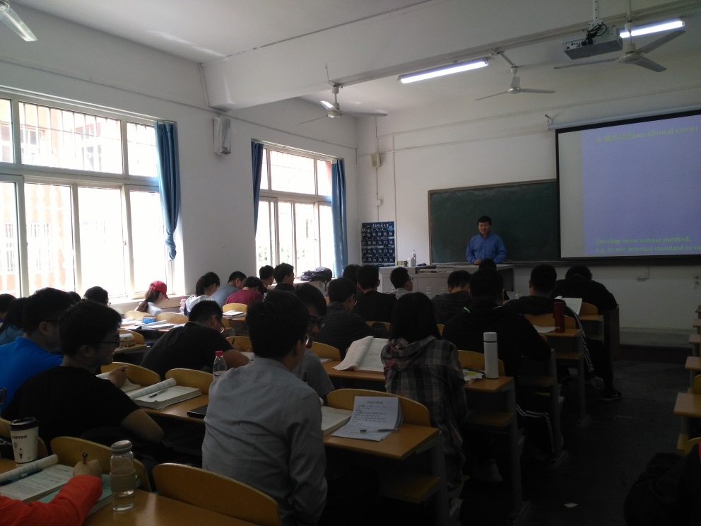 聘用外籍教师为中美应化专业学生开设高水平专业英语课程是本专业培养计划的重要组成部分,Zhu博士在讲解分析化学基础知识的基础上,善于结合实际案例进行讲解,将基础理论知识融于具体的应用研究中帮助学生理解,教学中适当插入日化用品中的分析化学,该教学特色极大地调动了学生的学习热情。